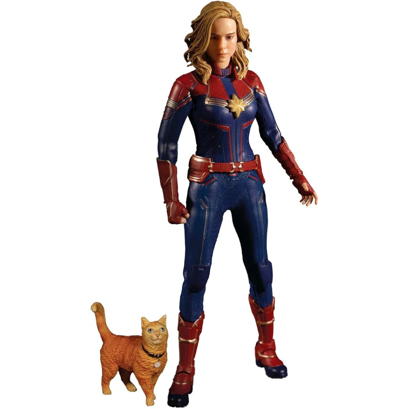 This remarkable Captain Marvel Movie One:12 Collective Action Figure features the likeness of actress Brie Larson. Accompanied by her space-travel companion and pet cat, Goose, the cosmic-powered hero is presented in a fitted suit with star insignia, shoulder armor, wrist gauntlets, a waist belt, mid-calf boots, and a removable flight bomber jacket! She comes comes with a range of energy projection effects that are perfect for defending Earth during a galactic war. But that’s not all! Check out these awesome accessories: