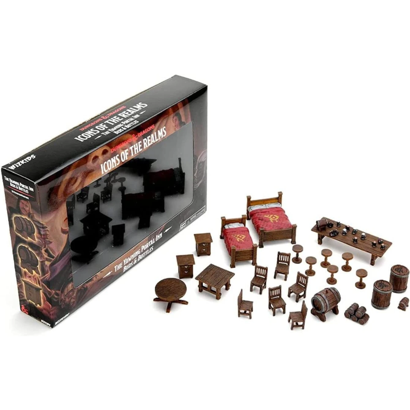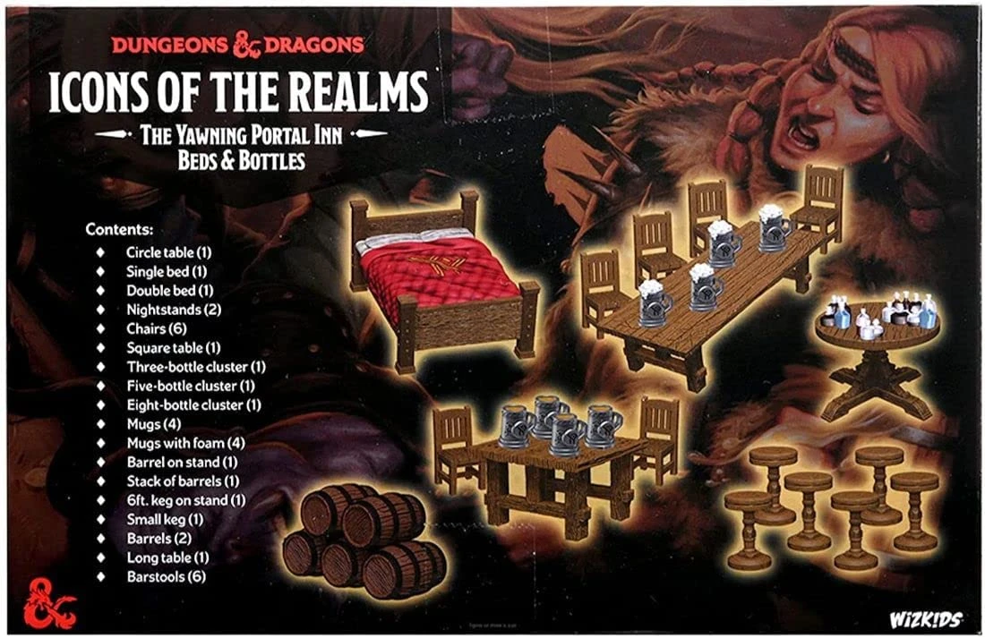 Make sure you have everything you need for a memorable game night at D&D Icons of the Realms: The Yawning Portal Inn! With Beds & Bottles, you’ll enjoy a variety of tables and chairs, kegs and barrels, and even two styles of beds to help set the scene. Waterdeep’s popular gathering place is ready to come to life at your table.