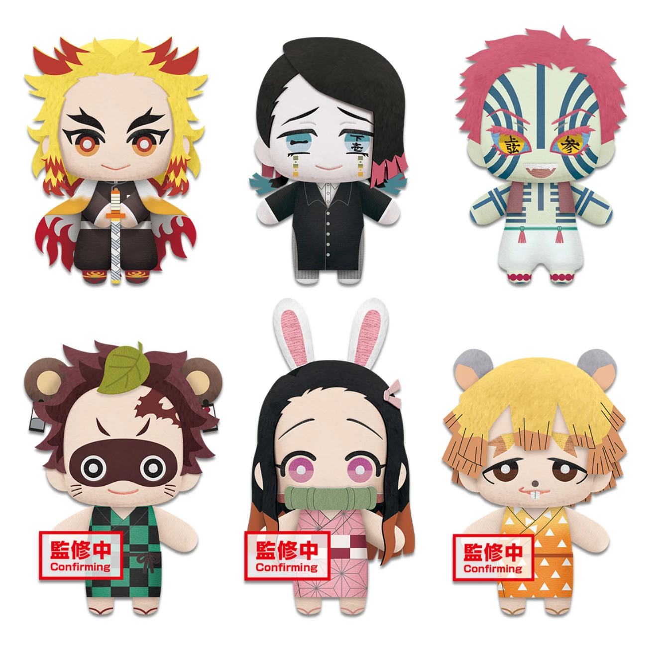 Demon Slayer Tomonui Plush assortment comes out with their fourth series! This series includes Kyojuro Rengoku, Enmu, Akaza, Tanuki Tanjiro, Bunny Nezuko, Squirrel Zenitsu!