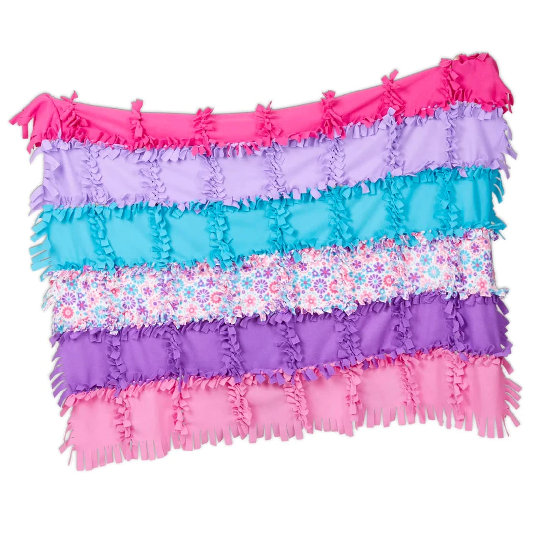 - Includes 48 12-inch by 12-inch fleece squares with slotted fringe for easy tying
