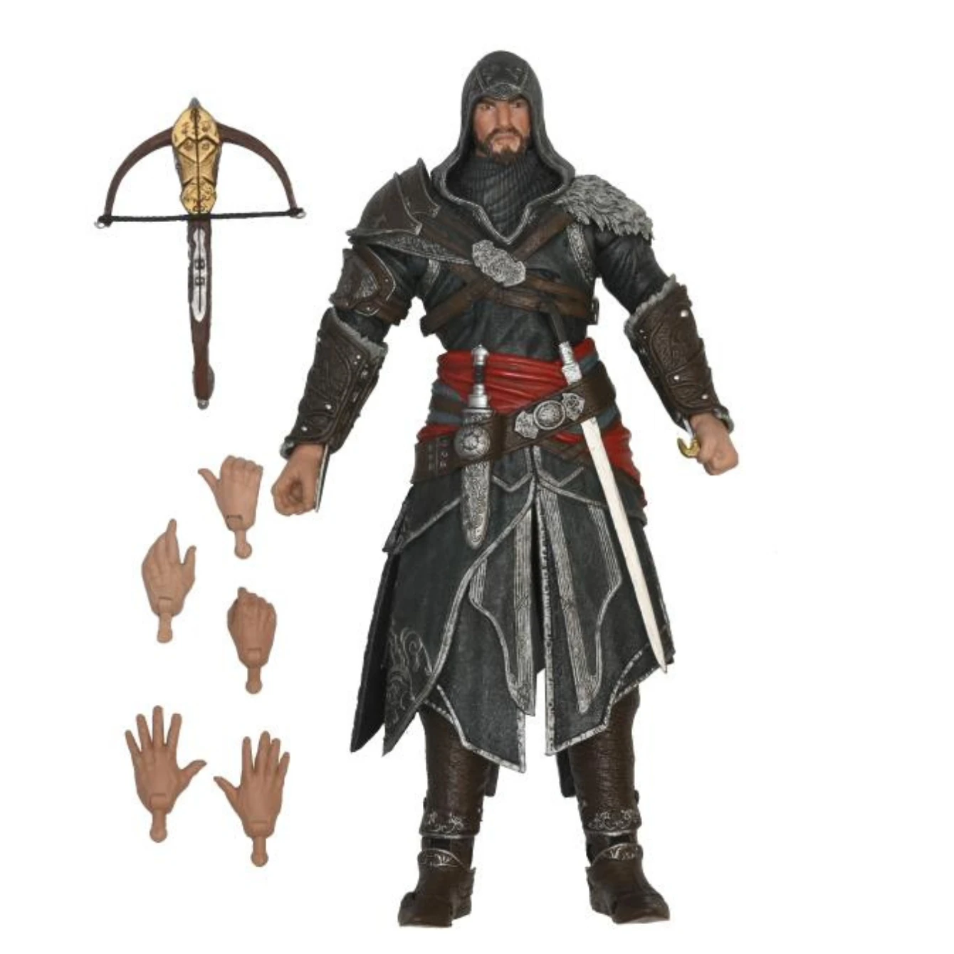 From Assassin’s Creed: Revelations comes this highly detailed Ezio action figure! With improved articulation and updated paint, Ezio Auditore stands in 7″ scale and has over 35 points of articulation. This figure inclucdes interchangeable hands, dagger, sword, and crossbow weapons along with his signature extending wrist blades. Also he comes with window box packaging to be the perfect addition to your collection!