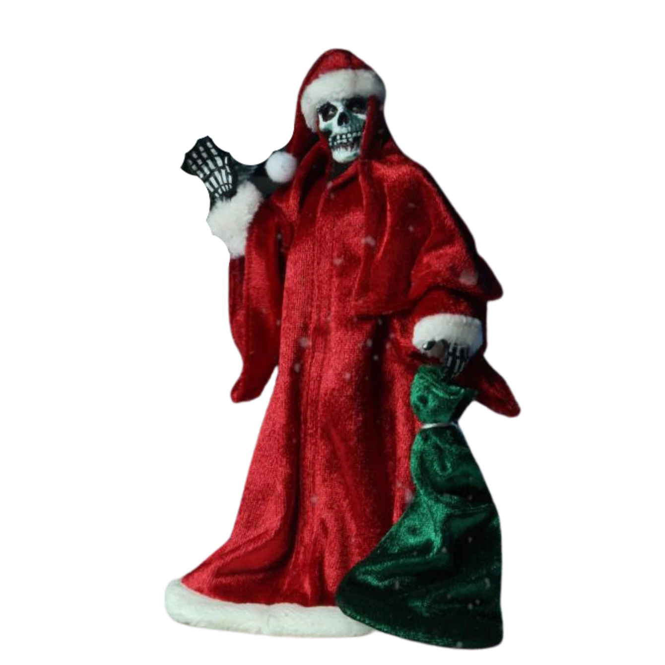 Wearing a long tailored robe and a removable Santa hat, this Misfits Holiday Fiend is dressed for a trip to your Christmas tree this winter season! Standing at 8 inches tall, this poseable figures comes with a fabric present sack and 2 sets of hands.