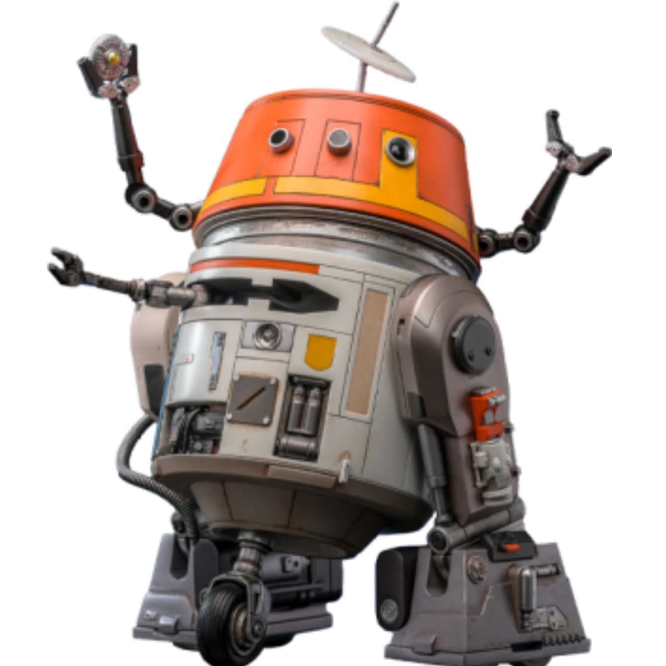 A beat-up, patched-together astromech droid dating back to the Clone Wars, C1-10P — or Chopper —is a reliable droid who has served with Hera Syndulla for decades. Loyal to a fault, with a cranky personality to match his weathered finish, during the age of the