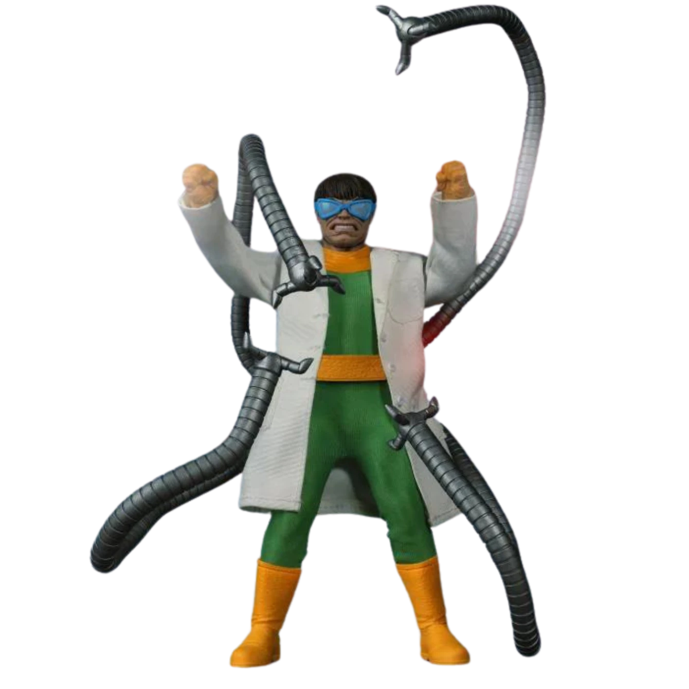 Straight from the comic pages, the One:12 Collective Doctor Octopus is dressed in his classic green bodysuit, featuring a removable lab coat and three interchangeable head portraits in varying expressions. The maniacal menace wields his signature weapon— sets of four highly posable, tentacle-like arms in different lengths that are assembled on his back, complete with multiple interchangeable claws for each arm.