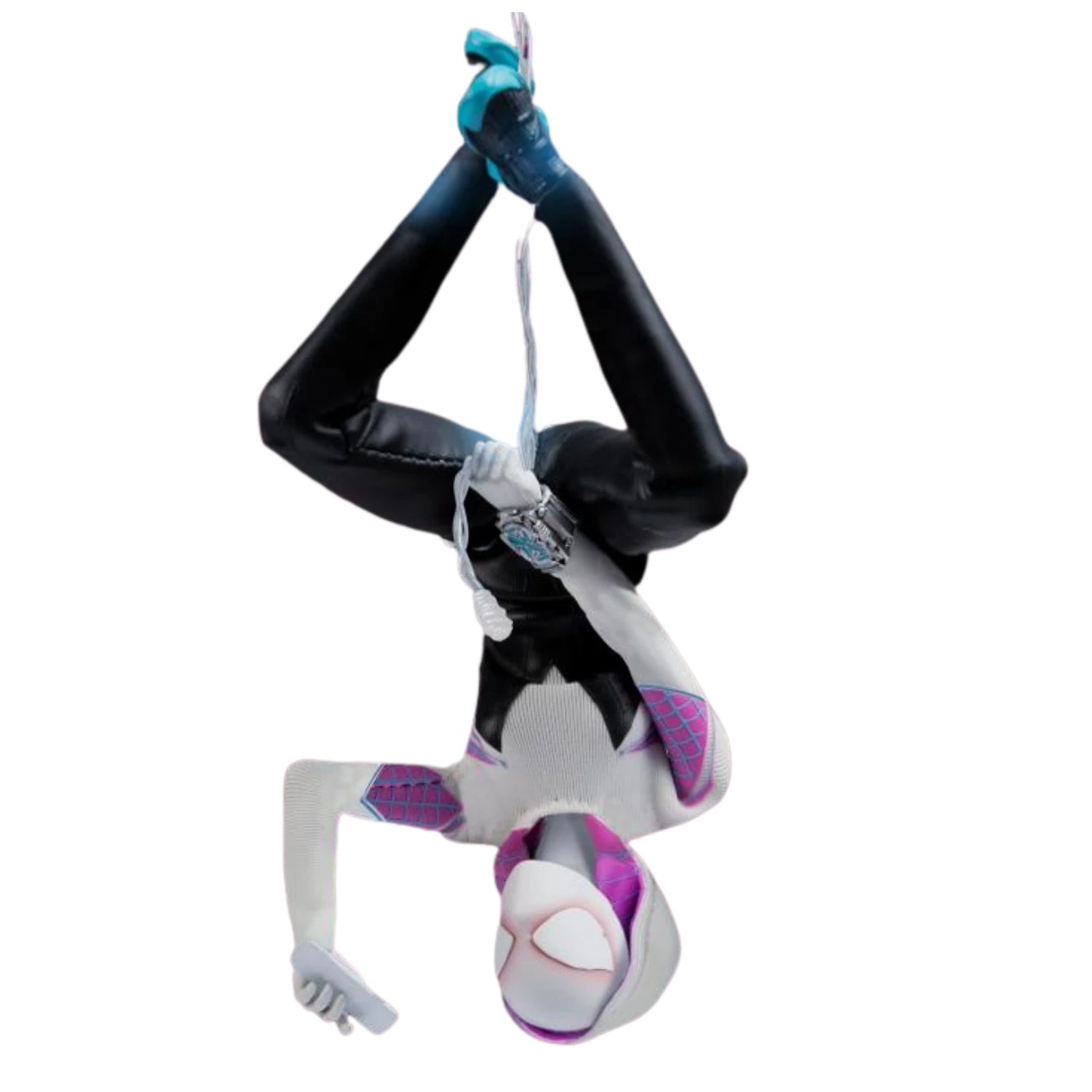 The One:12 Collective Ghost-Spider wears a fitted, hooded body suit with cobweb detailing. She comes complete with four head portraits with varying expressions, including an unmasked Gwen Stacy portrait. Ghost-Spider is equipped with all she needs to travel the multiverse such as a dimensional travel watch, multiple web lines, a cell phone, a multiverse portal FX, and more.