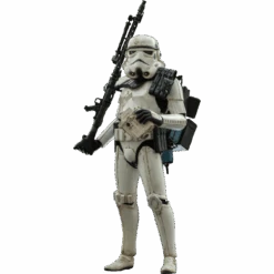 Stormtroopers™ dispatched to desert worlds wear specialized gear and are nicknamed Sandtroopers, their ranks can be identified by the colored pauldrons they wear. Sandtroopers are equipped with standard Stormtrooper armor augmented with cooling units, a helmet sand filter, and a survival backpack with extra rations and water. While hunting for the Death Star™ plans on Tatooine, audiences viewing were introduced to Sandtroopers for the first time!