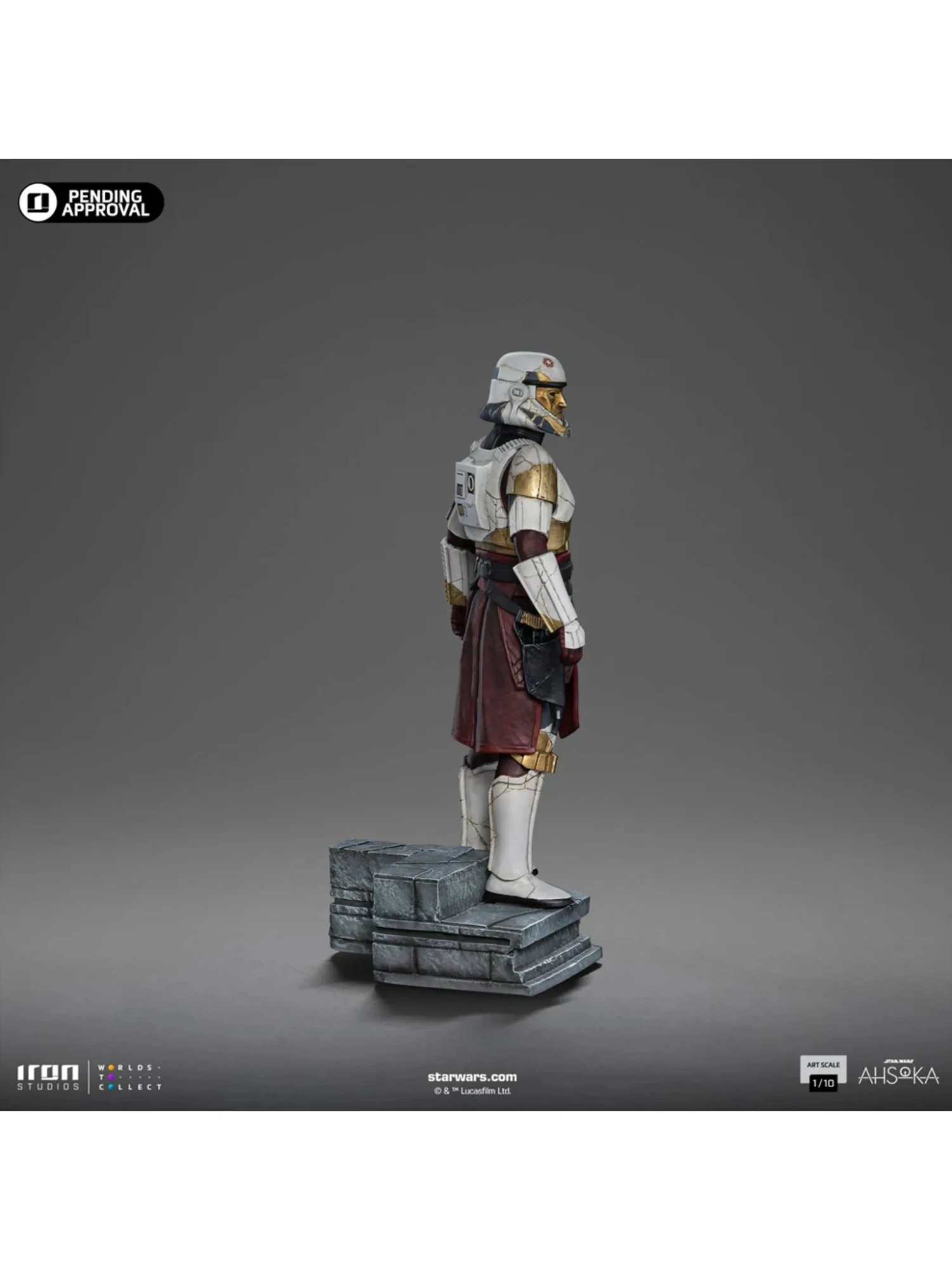 Who is Captain Enoch? Created for the TV series Ahsoka from streaming service Disney +, Captain Enoch, played by actor Wes Chatham, first appeared in the episode Part VI: Far, Far Away, and his armor was inspired by the golden armor of Mordred in the movie Excalibur from 1981. Enoch was the Captain of the Guard for Grand Admiral Thrawn during the exile of his galactic troops in the planet Peridea. The captain led Thrawn’s Legion of Night Troopers aboard the Star Destroyer Chimaera. Thrawn’s plans were interrupted by the warrior Ahsoka Tano’s arrival at Peridea. Enoch accompanied Thrawn on the Eye of Sion as it departed to the known galaxy, reaching the world Dathomir. As Thrawn’s lieutenant, he further exercised command over starfighter and gunship units, including Elsbeth’s scout guard fighters and the Chimaera’s surviving compliment of TIE fighters and LAAT/Ie patrol gunships. He was even granted command of the Eye of Sion during the transfer of the cargo to the Chimaera and thus gave orders for how to use its firepower, as per Thrawn’s orders. Exploring the statue: Over the concrete steps of the fortress in Dathomir in the distant planet Peridea, a threatening sentinel with a worn-out white armor with cracks in the plaques mended with golden metallic details and many parts replaced by gray fragments, his helmet brings two red imperial coats of arms printed on top, and a golden metallic humanoid cover in the place of his face. Instead of a utility belt which is standard for Troopers, the military imperial leader brings a black blaster with golden details in his holster, which he uses as a black belt around his wine-red kama. Iron Studios expand their imperial forces with the statue “Captain Enoch – Star Wars – Art Scale 1/10”, the mysterious empire officer member of the surviving legion of Thrawn. Figure details: Created for Iron Studios’ Star Wars line, inspired by the Ahsoka TV streaming series, Captain Enoch – Star Wars – Art Scale 1/10 measurements are 8,6 in (H) – 4,1 in (W) – 3,7 in (D), weighting 1,1 lb., which allows an impressive presentation of the statue in any environment. Special features: The statue Captain Enoch – Star Wars – Art Scale 1/10 statue by Iron Studios will be produced in limited edition. The diorama base present rich details inspired by the original references. Materials and finishing of the piece: Just like all the statues manufactured by Iron Studios, the statue Captain Enoch – Star Wars – Art Scale 1/10 is made with high-quality materials, such as the Polystone, and may contain other parts in resin, PVC, metal, and fabric. The manual painting of the finishing guarantees a unique and exclusive artistic touch to please all the collectors. Presented on the Inside Iron Studios Day of March, already available for Pre-Order, check out the other statues Grand Admiral Thrawn and Night Trooper – Star Wars – Art Scale 1/10 among the future Star Wars releases from the Ahsoka series. Check out more news soon on Iron Studios’ social media and YouTube channel.