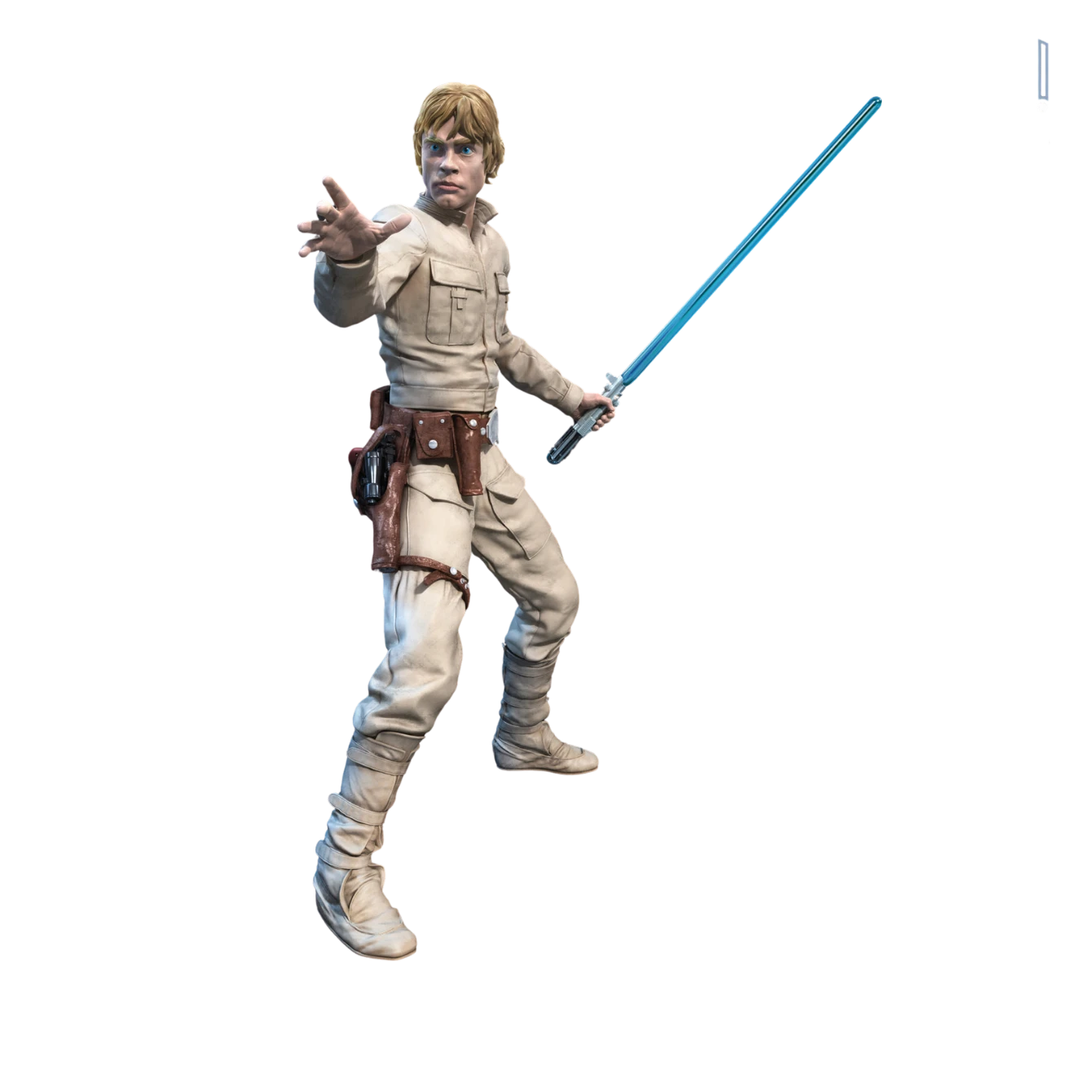 This Black Series Hyperreal Luke Skywalker figure features movie-inspired sculpt, detailed costuming, interior skeletal structure with seamless joints, and multiple points of articulation for realistic posing.