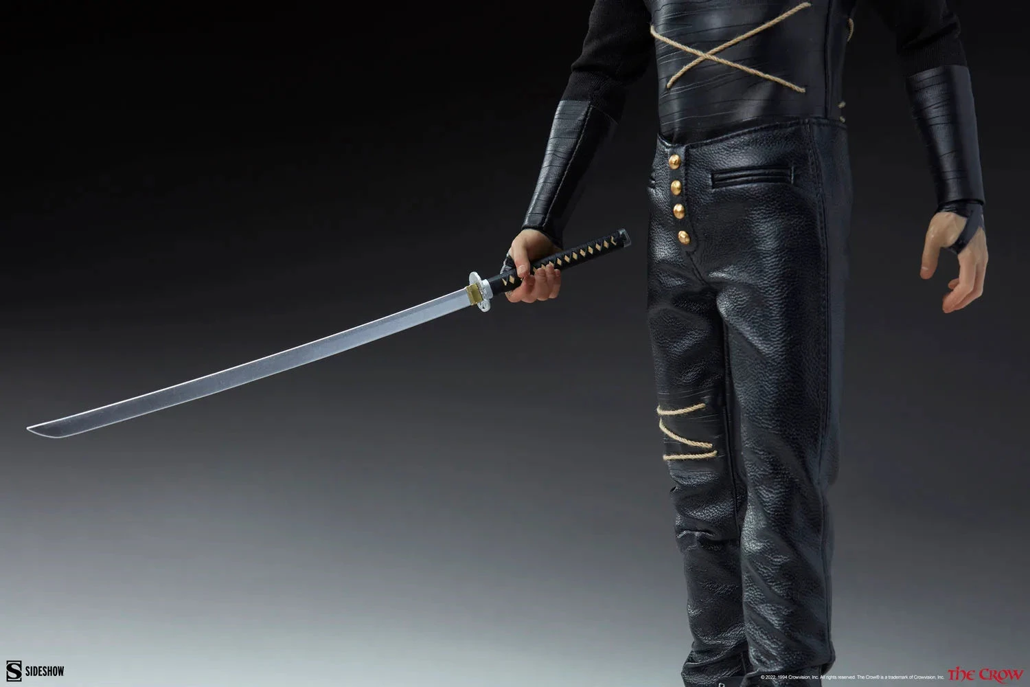 The Crow Sixth Scale Figure features a detailed likeness of actor Brandon Lee in his role as