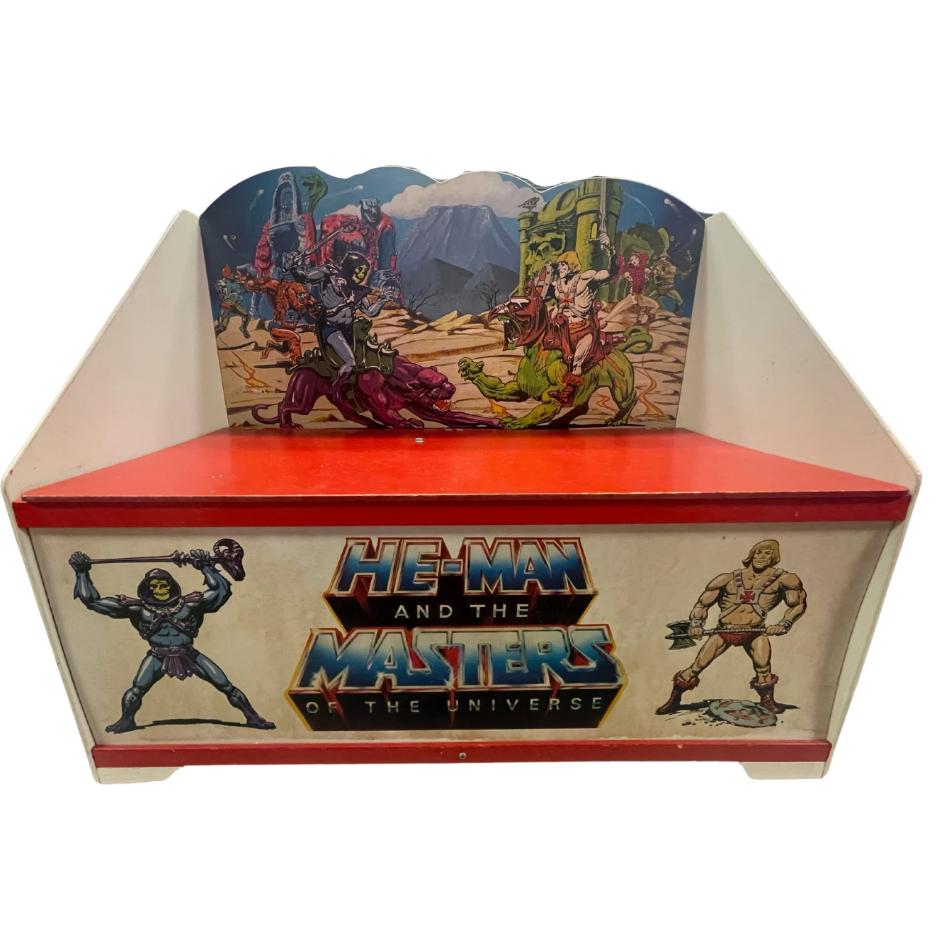 The seat opens and closes to hold all of your MOTU treasures! The graphics are still bright and clean.